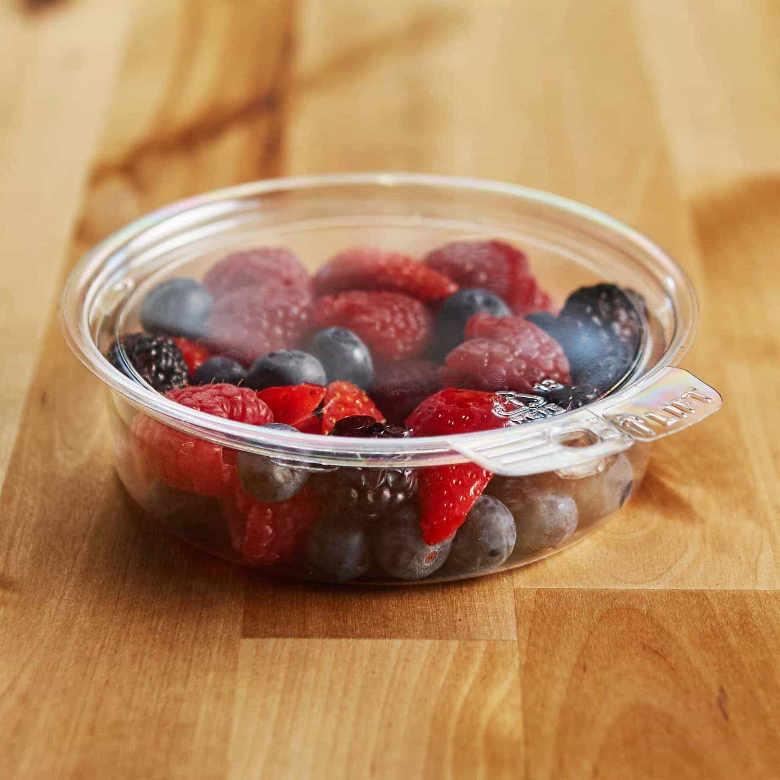 Display Pack round deli containers are the perfect solution for dips, produce, dried goods, deli items and more. Made with crystal clear PET for uninterrupted product visibility. Button lock tamper evident lid to keep your food safe and fresh.