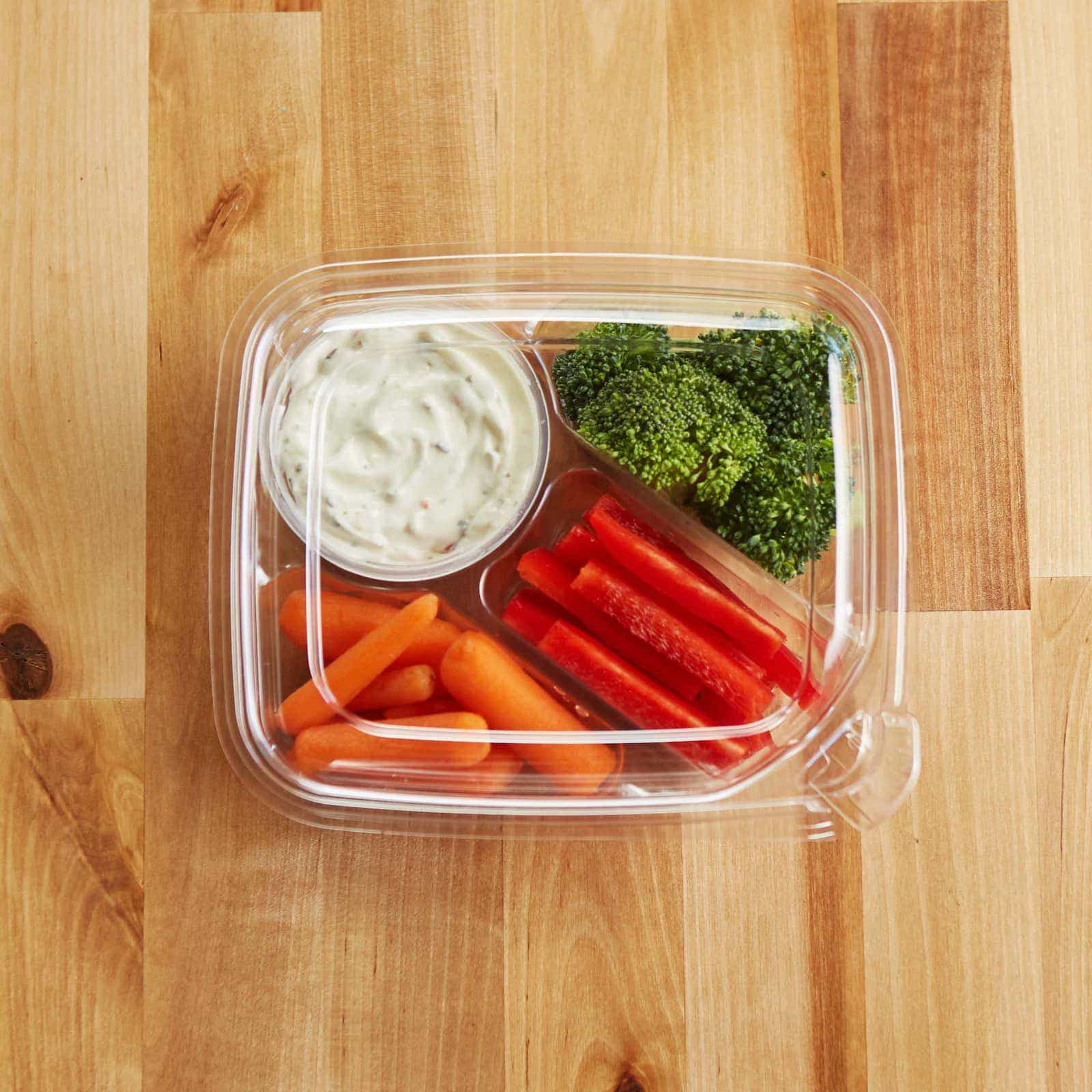 Use these multi-compartment, tamper evident containers for veggies and dips, fruit, deli items and more. The small compartment sizes make for easy portion control and keep items from mixing.