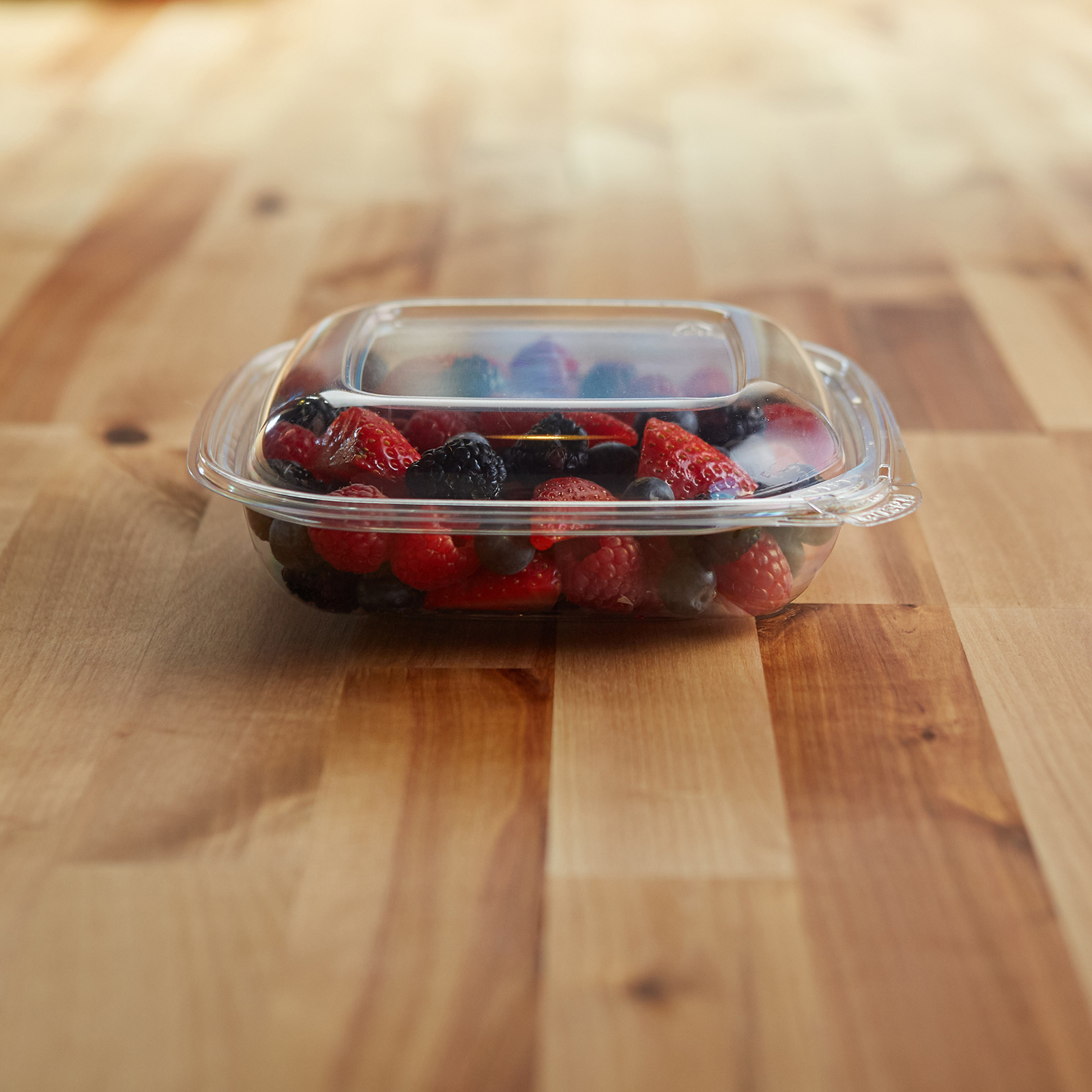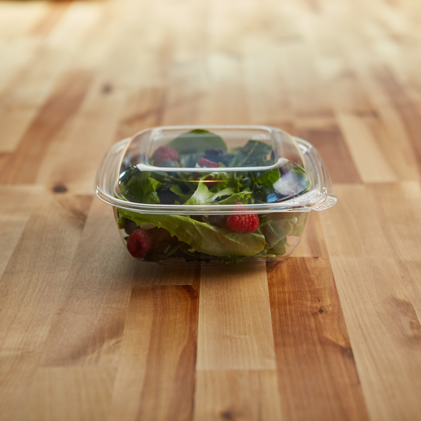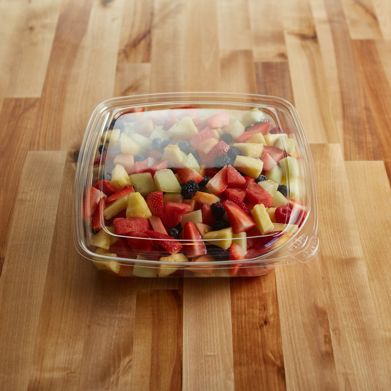 Our square bowls with our patented tamper evident indicator alerts you if a product was opened prior to purchase, increasing product safety, quality and freshness. Display Pack’s two-piece tamper evident packaging eliminates the need for sharp tear-away plastic strips. Featuring a sleek, clean design our versatile square bowls are ideal for produce, deli items or salads.